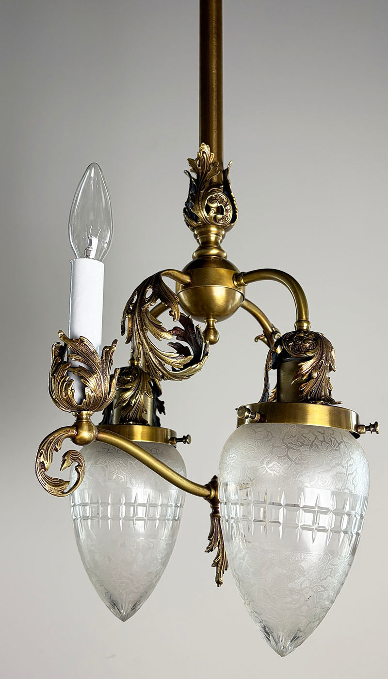 Wow! What an incredible early 1900s three light gas electric in the late Victorian Rococo...