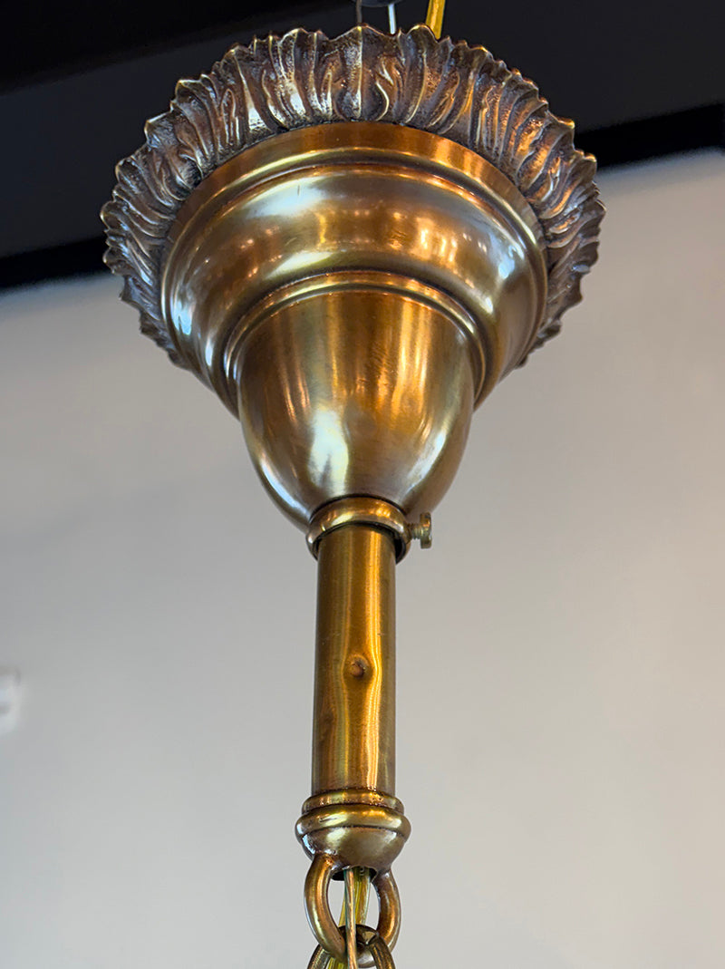 Stunning restored bronze Eastlake four light chandelier with deep embossed center body and canopy. Lovely...