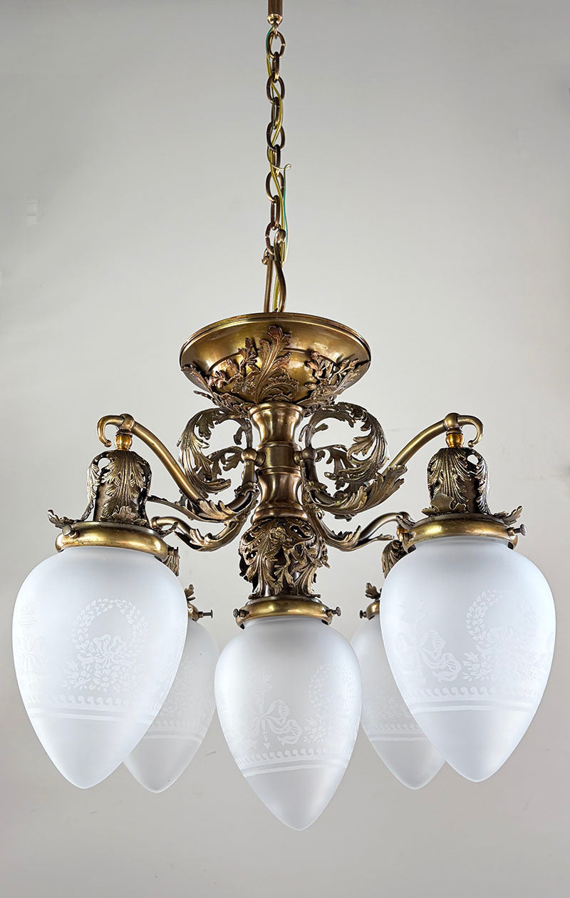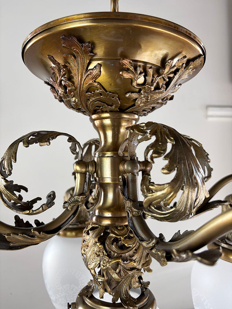 Fantastic Edwardian early electric 1905 era chandelier. Acquired from a home in Montreal, it is...