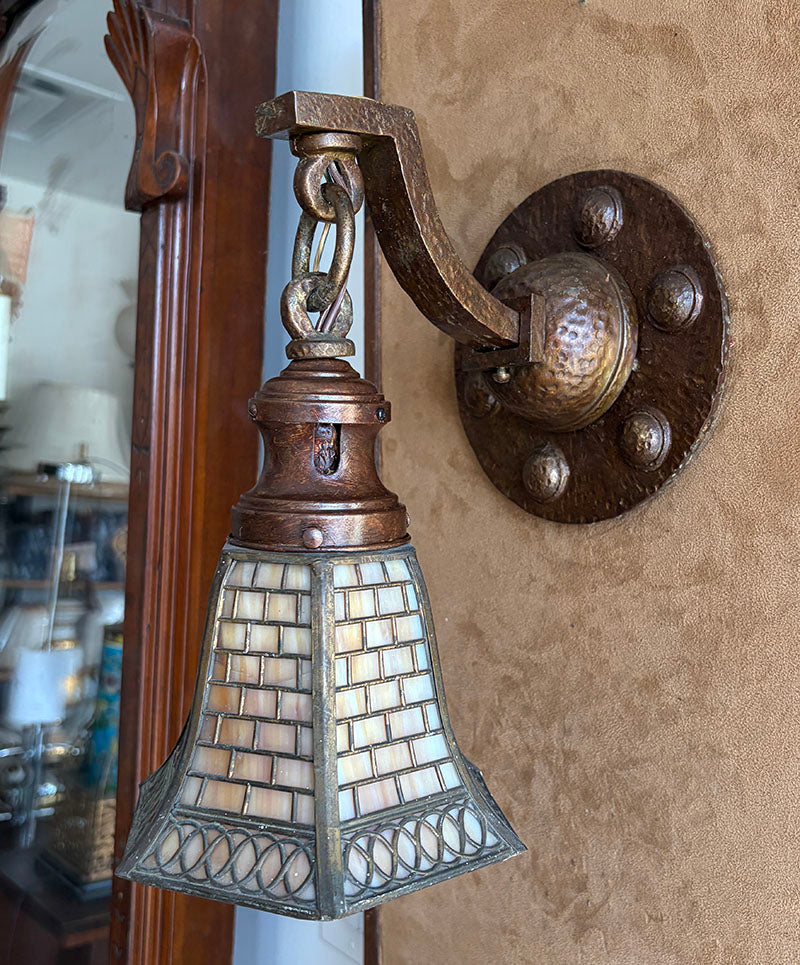 Perfect for a hallway or small room. Nice transitional Arts and Crafts Edwardian two light...