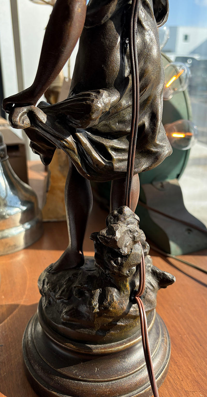 – Sold OutLovely 1910 Art Nouveau era " Fleur D'Ete" figural lamp signed by Ang Moureau. Made...