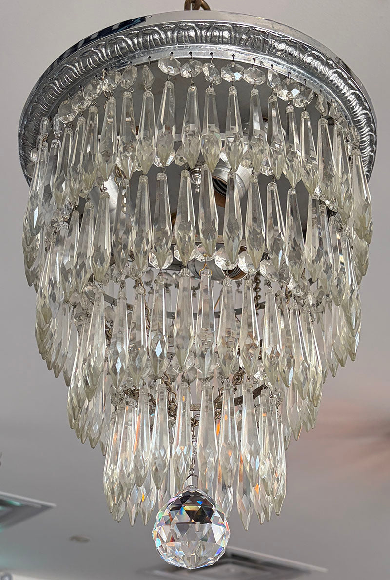 Perfect for a hallway or entrance. Elegant Edwardian single light cut glass tear drop pendant...
