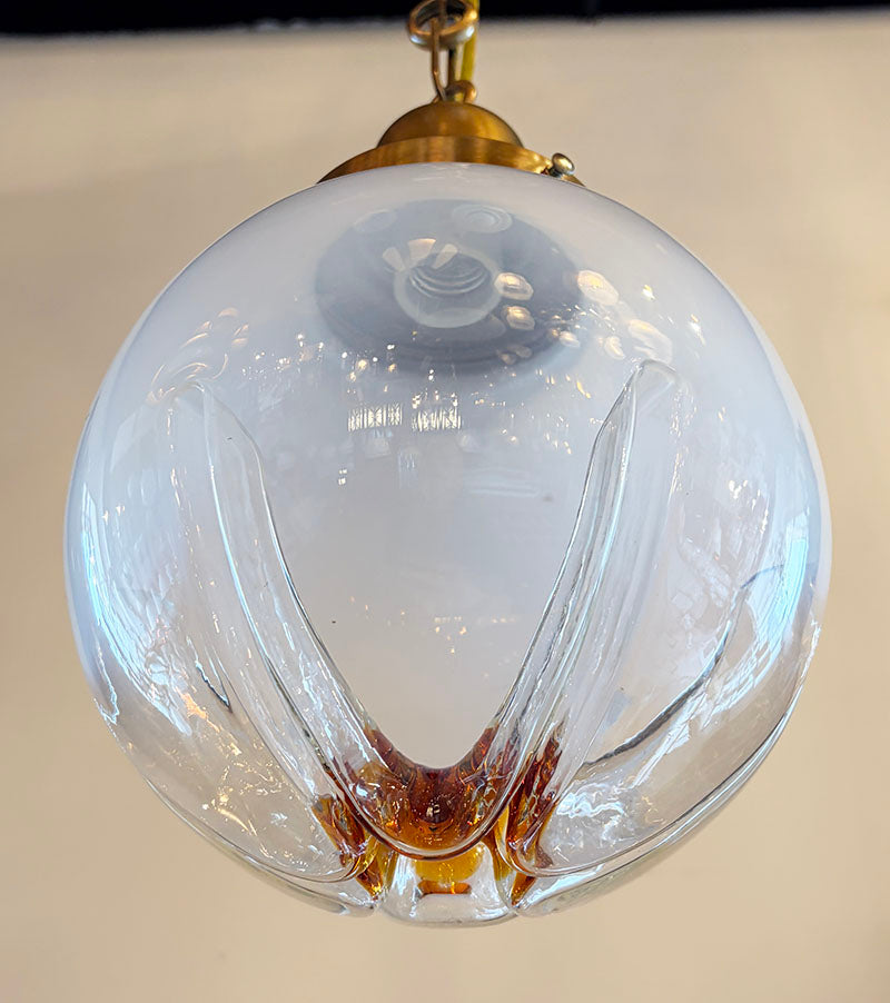 Very cool 1970s 8" Mazzega murano globe on a custom brass pendant. Would look stunning...