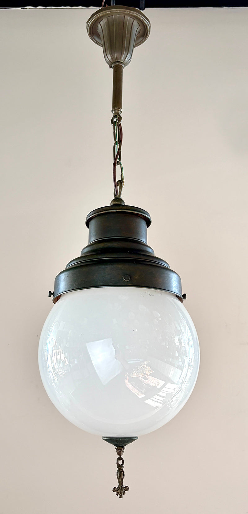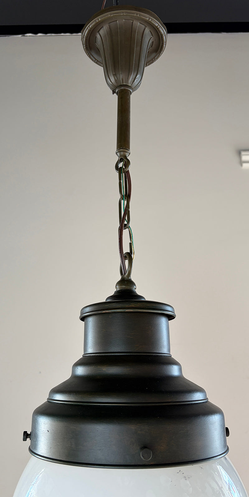 Classic 1900 era exterior opal copper and brass chain pendant. Nice verderis patina, Would look...