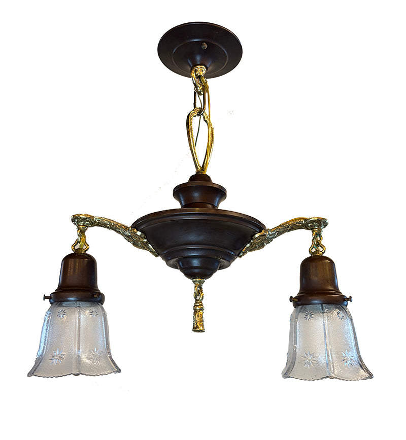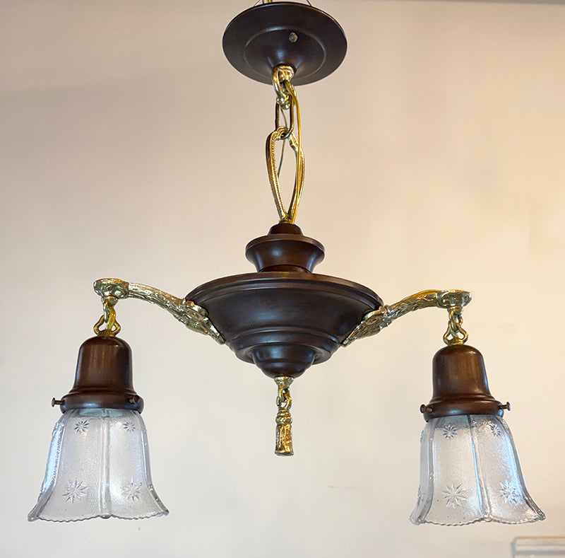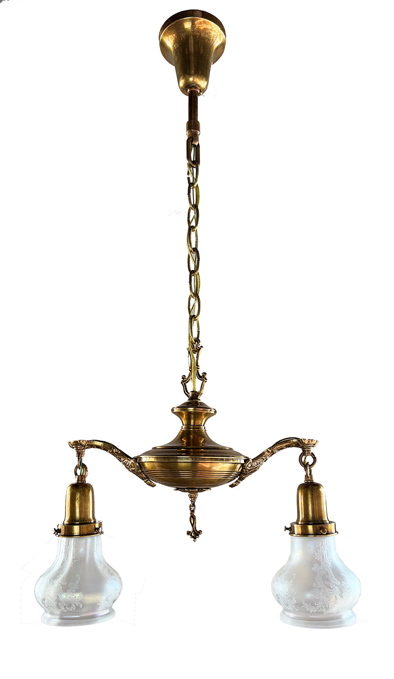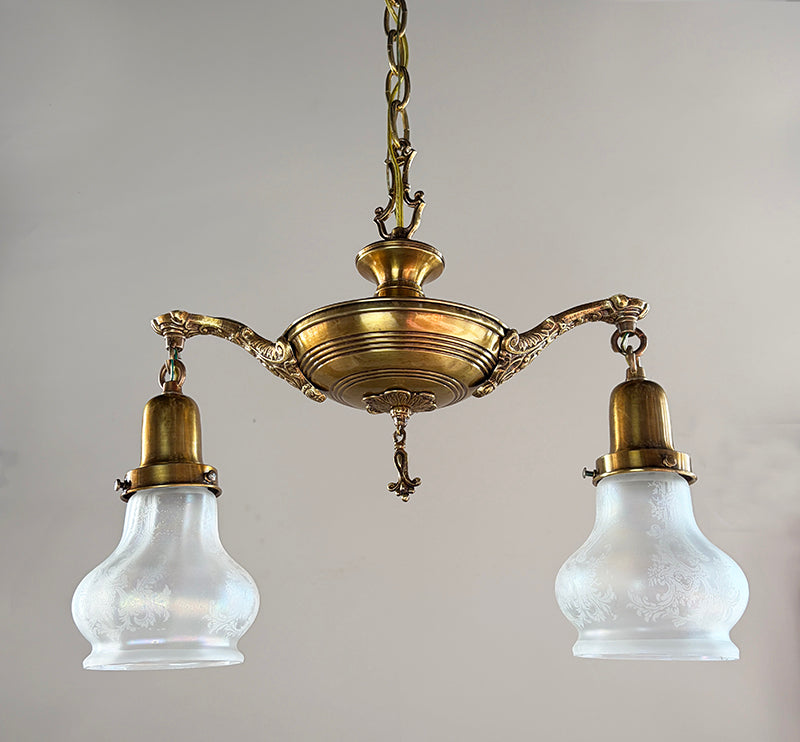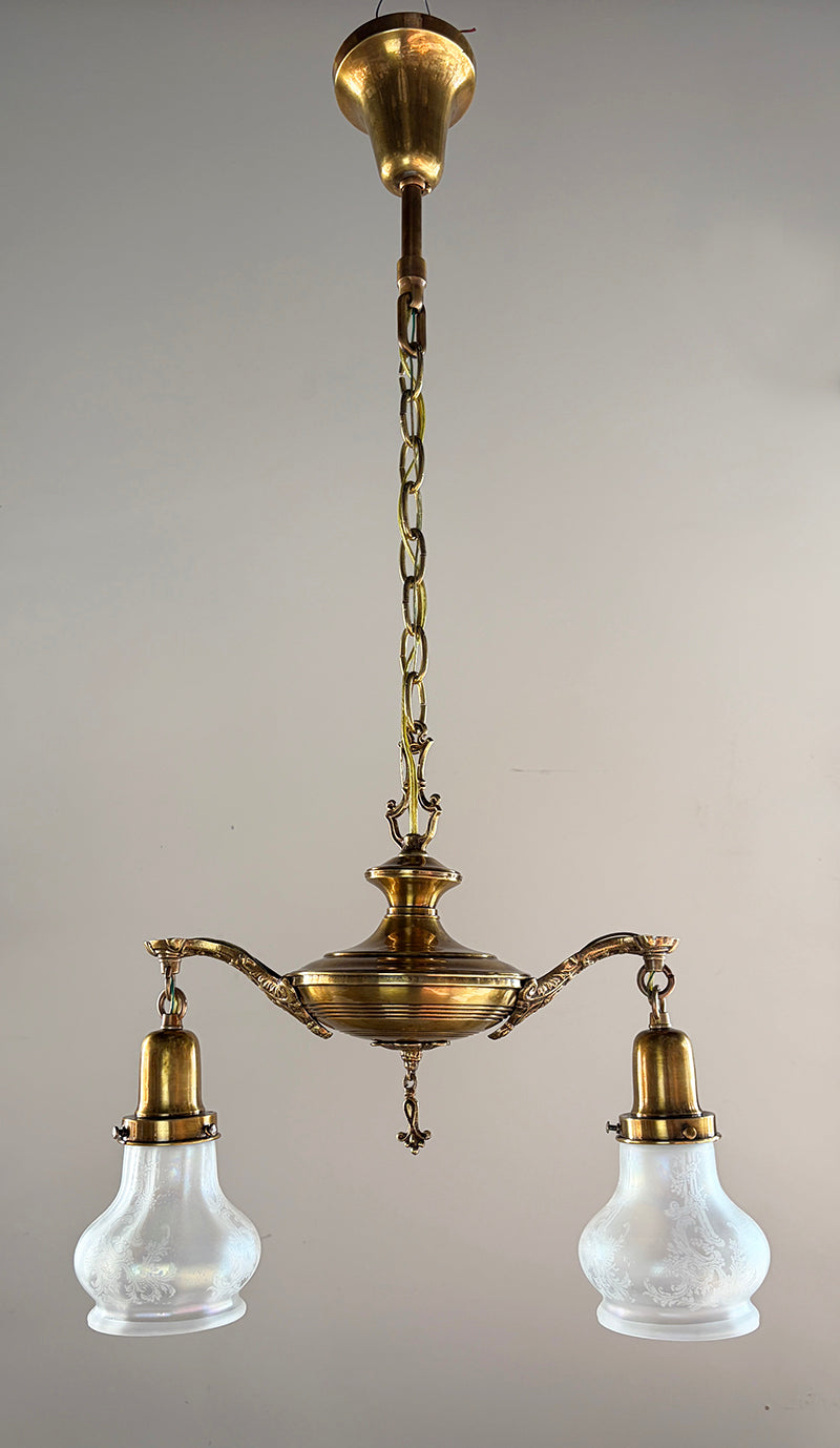 Perfect for a hallway or small room. Nice Edwardian two light pan with ringed center...