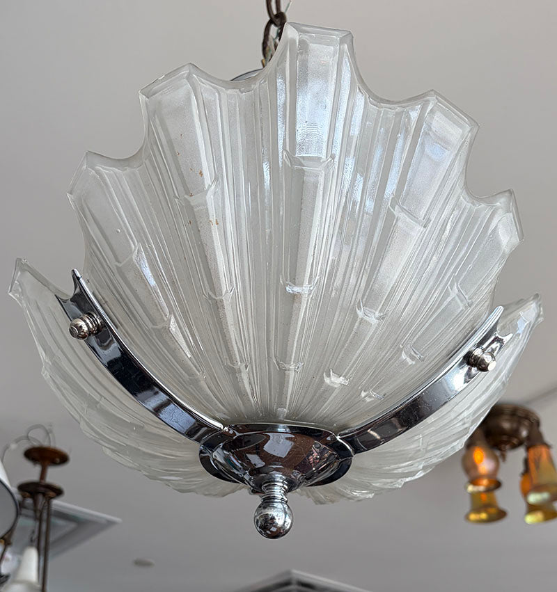 Unique 1925-30 French Art Deco slip shade flush mount. Original chrome finish. Great fixture for...