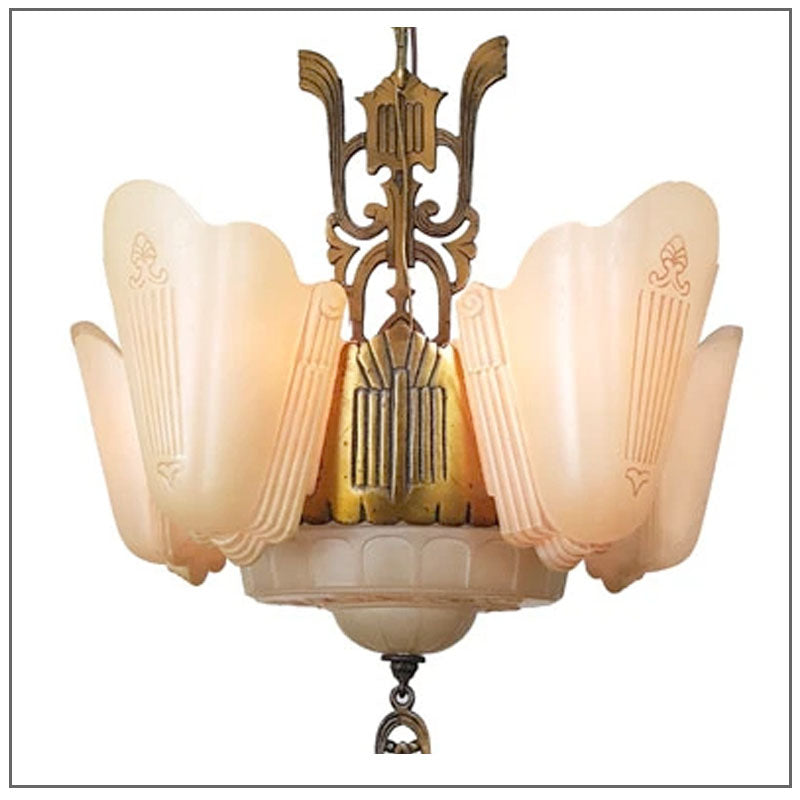 Stunning transitional Arts and Crafts Edwardian four arm fixture with hexagonal dome center and matching...