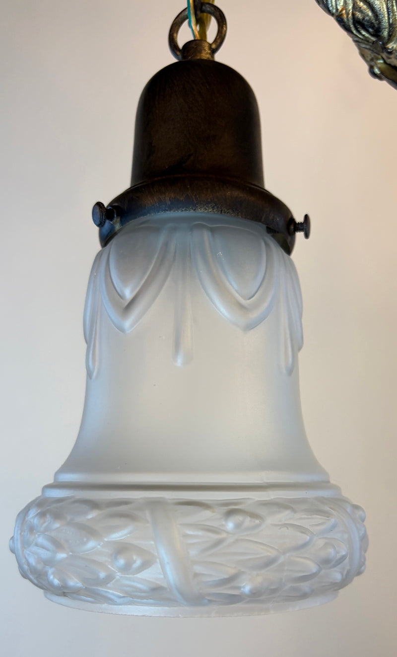 Sweet set of hand blown Murano shades on this stunning 1910 Edwardian embossed two light....