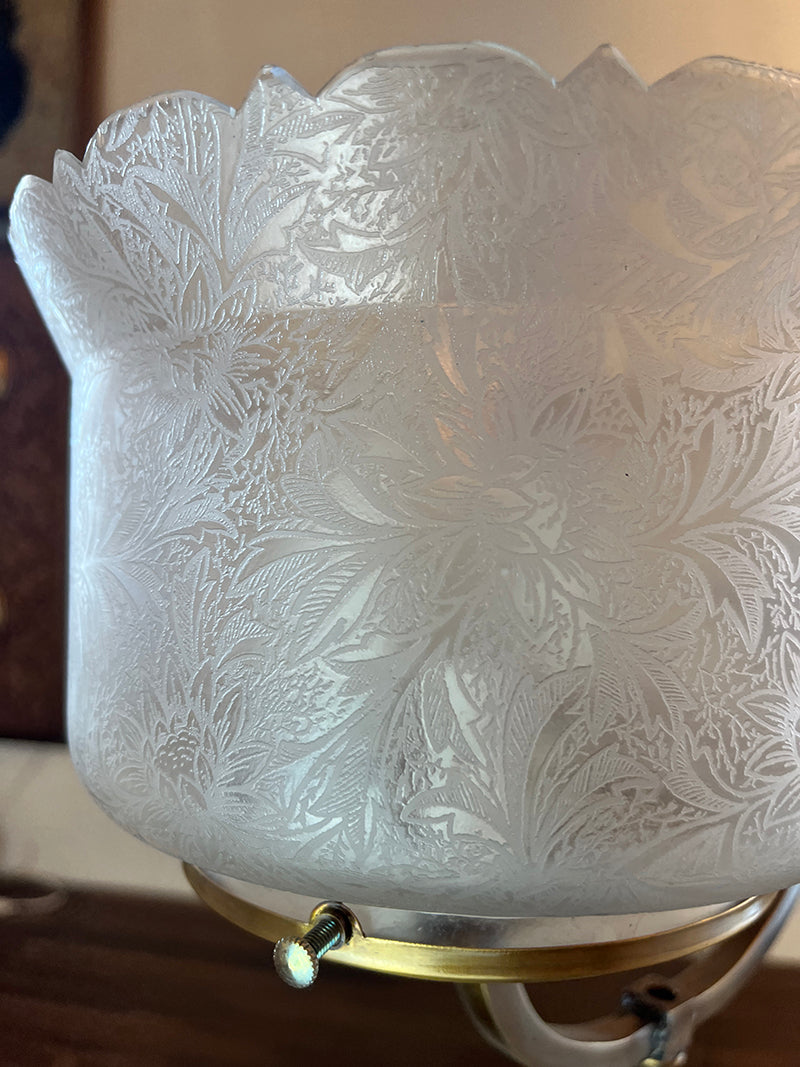 Classic Edwardian pendant with a restored black patina holder and original etched Urn and Garland...