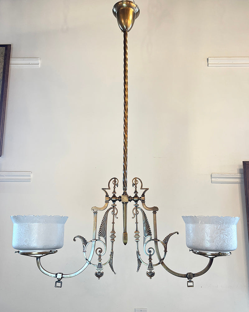 Sweet Antique Late Victorian Early Electric two light with scroll arms and cast acanthus details....